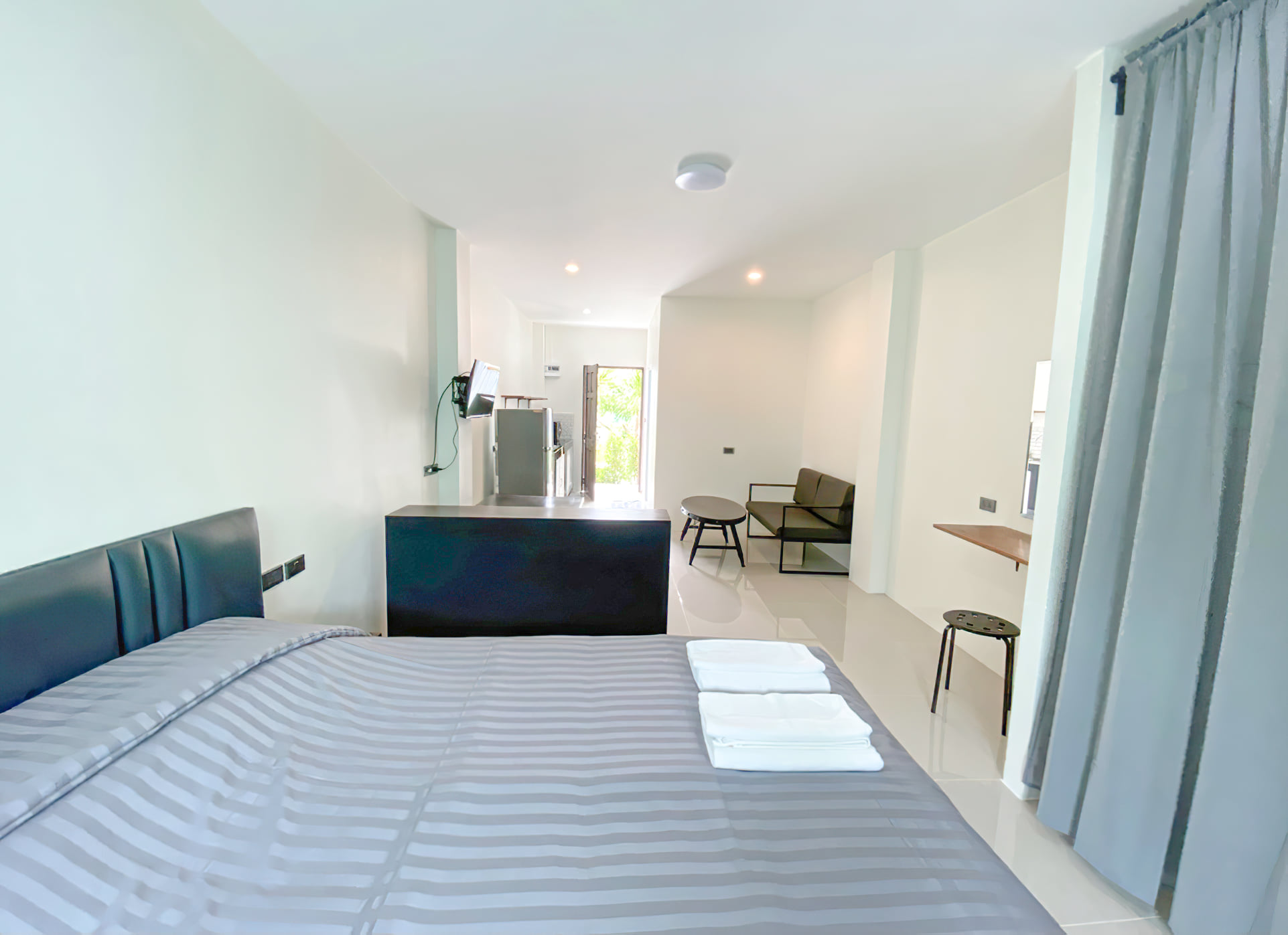 Peace & Happiness at Nakhon Phanom offers guestrooms with full support facilities. Designed for business and leisure travelers alike, this accommodation aims at creating a soothing environment where one can feel at home. Distinguishing itself from its surroundings, Peace&Happiness brightens up the intersection of Ratchathan and Bamrung Muang Roads. Its powerful presence is intended to attract even the most discerning clientele. To embody a modern clean look, a dark color scheme and natural materials such as stone and wood were combined to amplify its elegant character. Coupled with its close proximity to the Mekong River, the building’s architectural aesthetics manifest a unique resort-living atmosphere with a tropical ambience. While the finished interiors inside the units and communal areas are strategically treated to offer a sophisticated living space, the lavish outdoor green areas give residents a chance to unwind and enjoy life’s simplicity and serenity during their stays at Peace & Happiness.