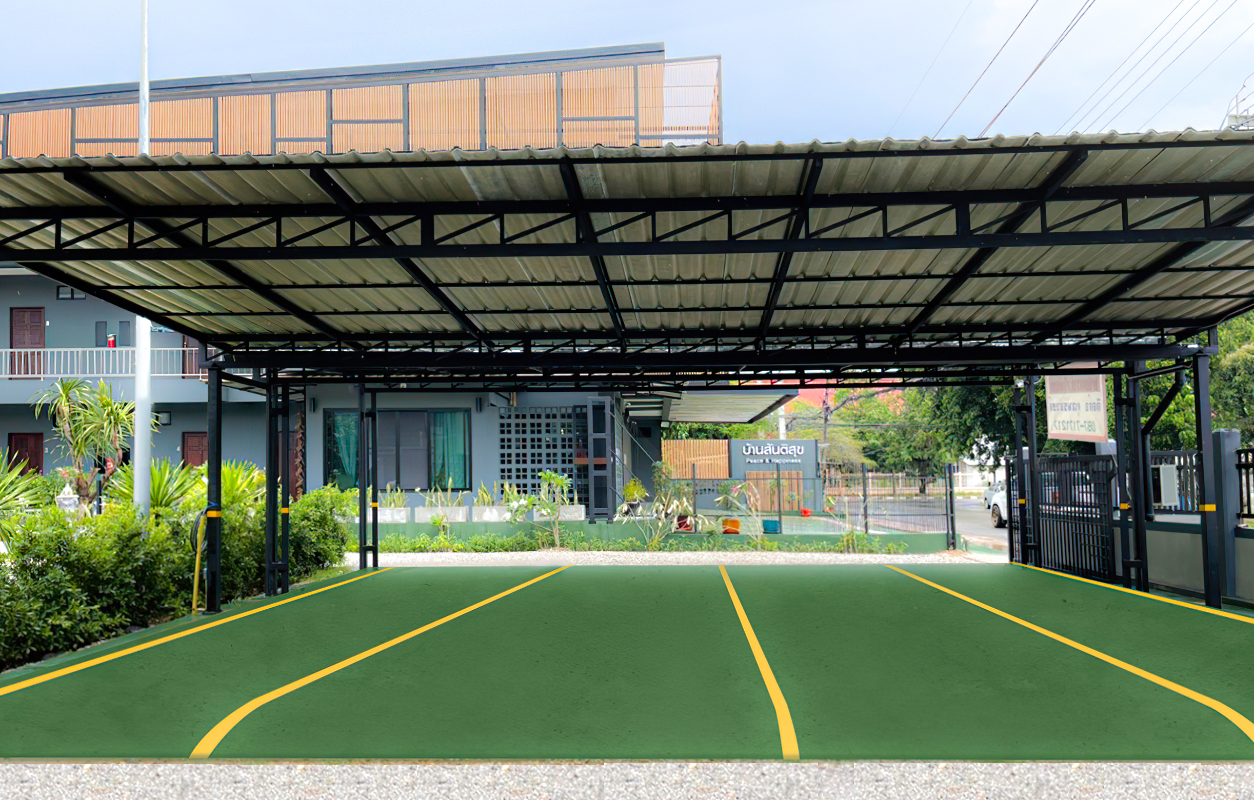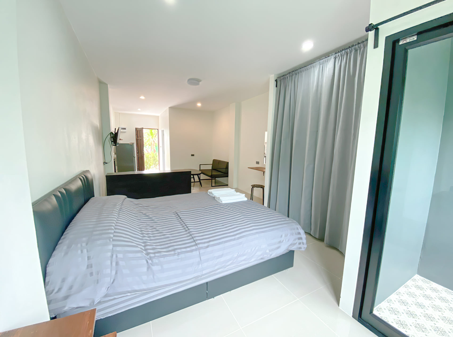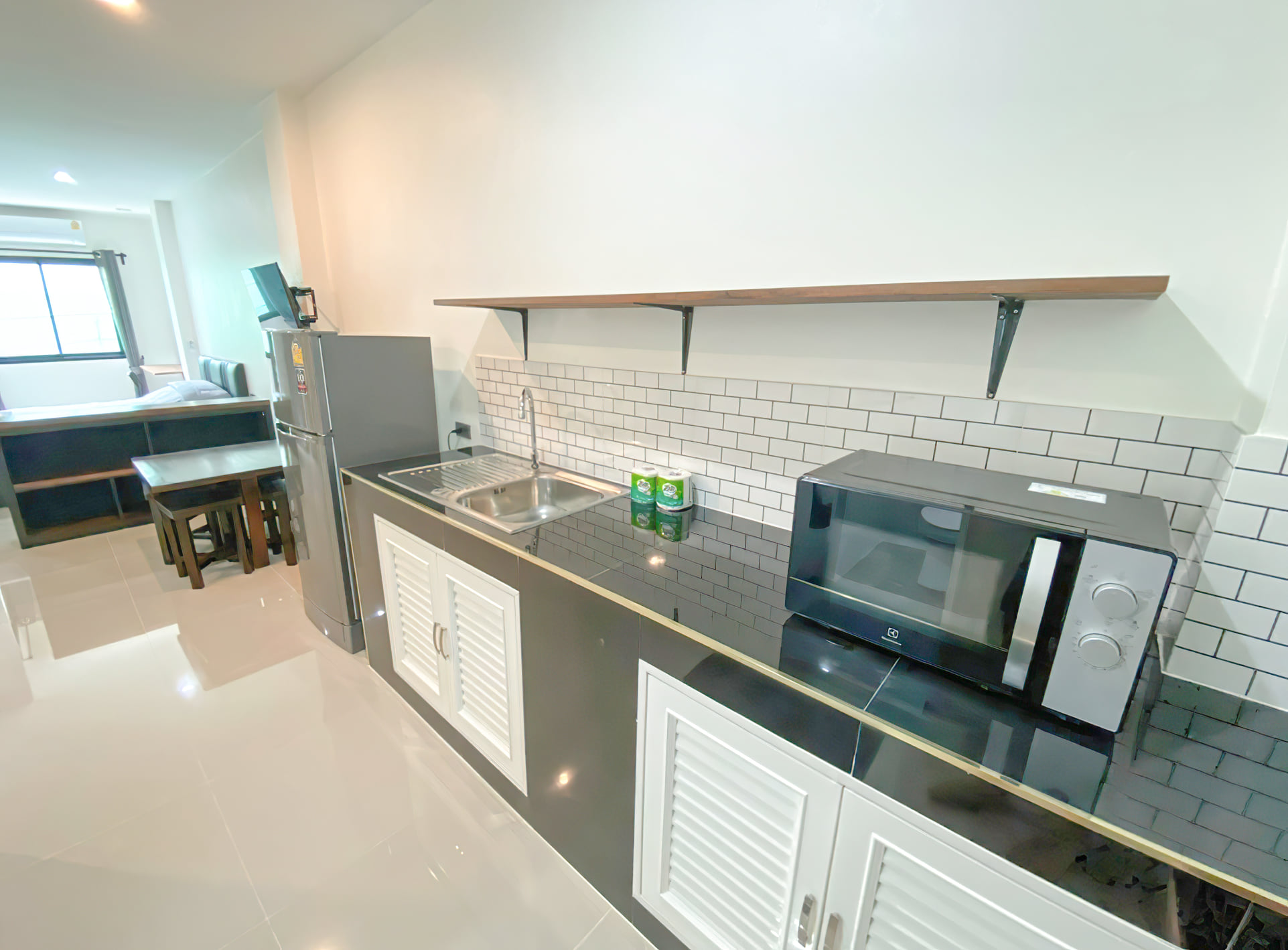Peace & Happiness at Nakhon Phanom offers guestrooms with full support facilities. Designed for business and leisure travelers alike, this accommodation aims at creating a soothing environment where one can feel at home. Distinguishing itself from its surroundings, Peace&Happiness brightens up the intersection of Ratchathan and Bamrung Muang Roads. Its powerful presence is intended to attract even the most discerning clientele. To embody a modern clean look, a dark color scheme and natural materials such as stone and wood were combined to amplify its elegant character. Coupled with its close proximity to the Mekong River, the building’s architectural aesthetics manifest a unique resort-living atmosphere with a tropical ambience. While the finished interiors inside the units and communal areas are strategically treated to offer a sophisticated living space, the lavish outdoor green areas give residents a chance to unwind and enjoy life’s simplicity and serenity during their stays at Peace & Happiness.